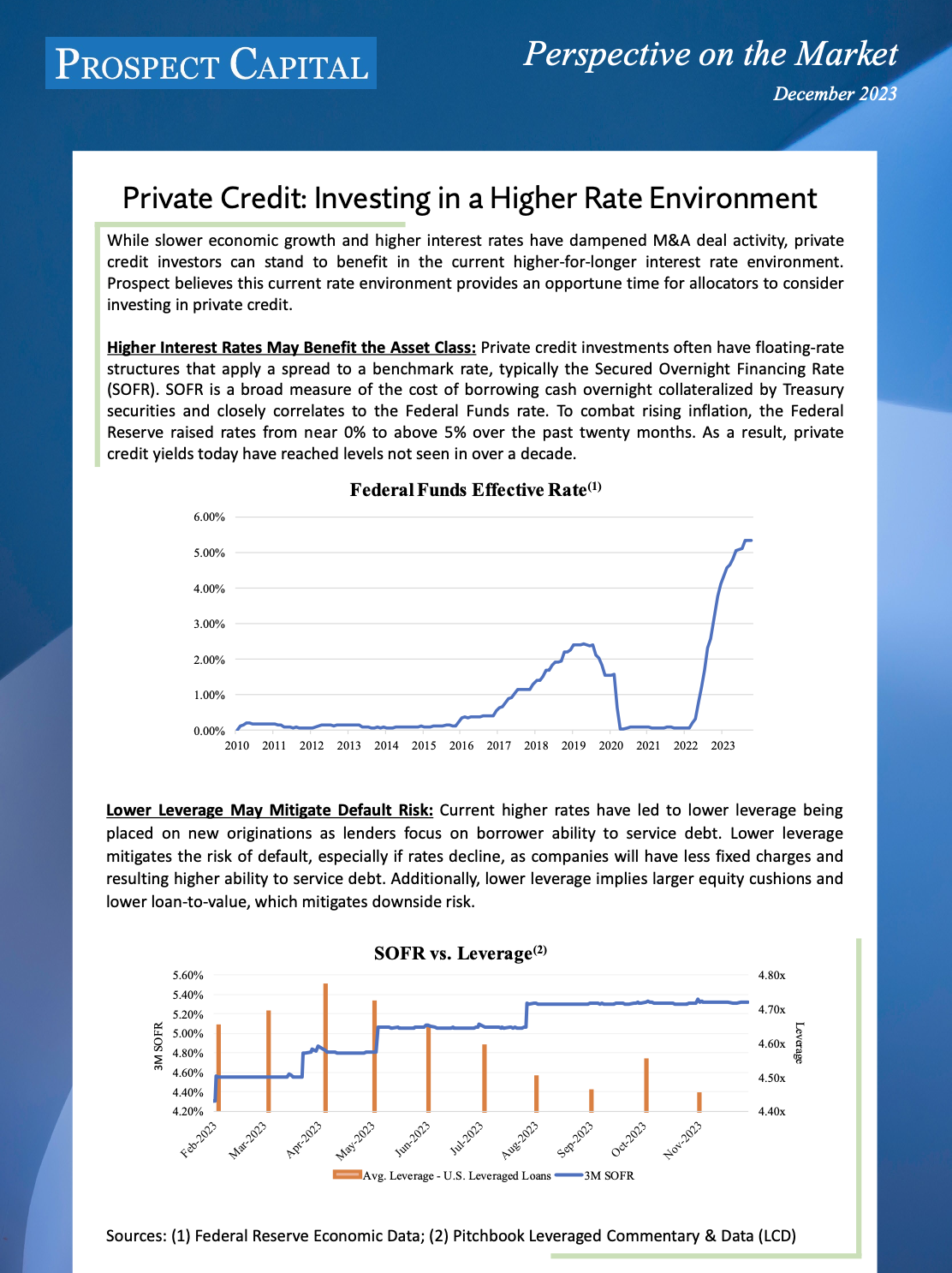 While slower economic growth and higher interest rates have dampened M&A deal activity, private credit investors can stand to benefit in the current higher-for-longer interest rate environment. Prospect believes this current rate environment provides an opportune time for allocators to consider investing in private credit.
